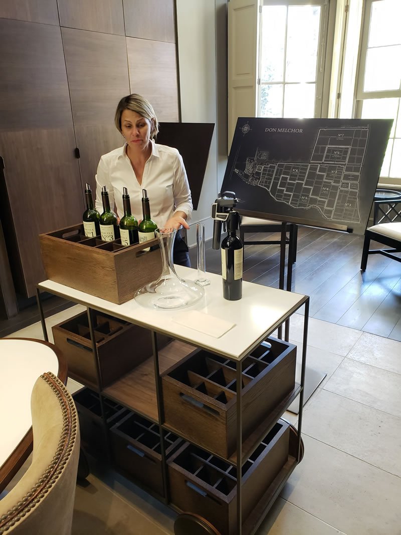A experiência finalizará com a visita à exclusiva Sala Coleção Don Melchor, onde se encontram todas as safras de Don Melchor, desde seu lançamento em 1987 até hoje, e onde estão disponíveis para venda todas as safras de Don Melchor, um dos melhores vinhos do Chile e uma referência em Cabernet Sauvignon no mundo todo.
