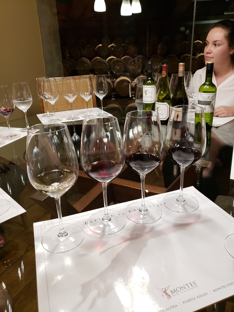 Na Vinícola Montes (que tem o restaurante Fuegos de Apalta do famoso Chef Francis Mallmann) há uma sala onde os vinhos ficam descansando com cantos gregorianos. A vinícola Viu Manent é umas das melhores pra ir com criancas: tem passeio de charrete, cavalos e bicicleta pelos vinhedos. As degustações são incríveis e o restaurante Rayuela Wine & Grill é excelente.